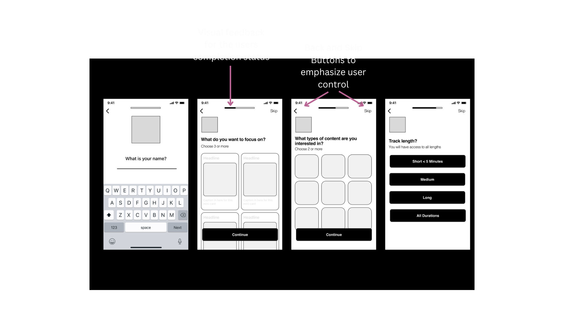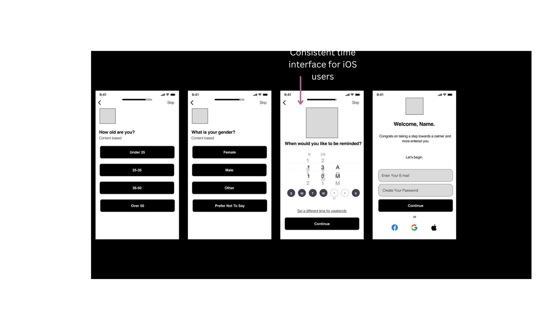 I organized a user interview where participants were given the freedom to navigate through the prototype independently, with only an endpoint screen provided. This approach offered me a live glimpse into how users engaged with and navigated through the app's onboarding process.