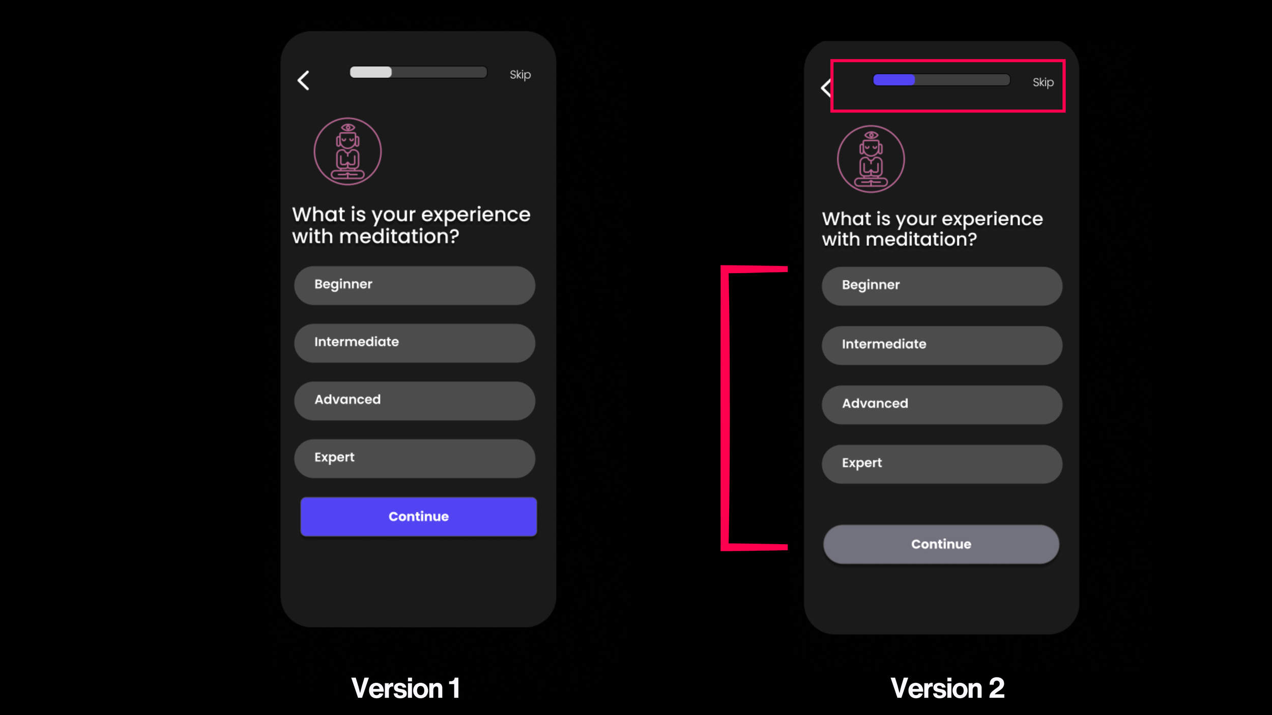 The padding and UI elements were adjusted to have a more rounded appearance, creating a sense of continuity throughout the interface. Also, by switching the progress bar from a dull gray to a vibrant indigo color scheme, it became much easier to see and grabbed attention more effectively.