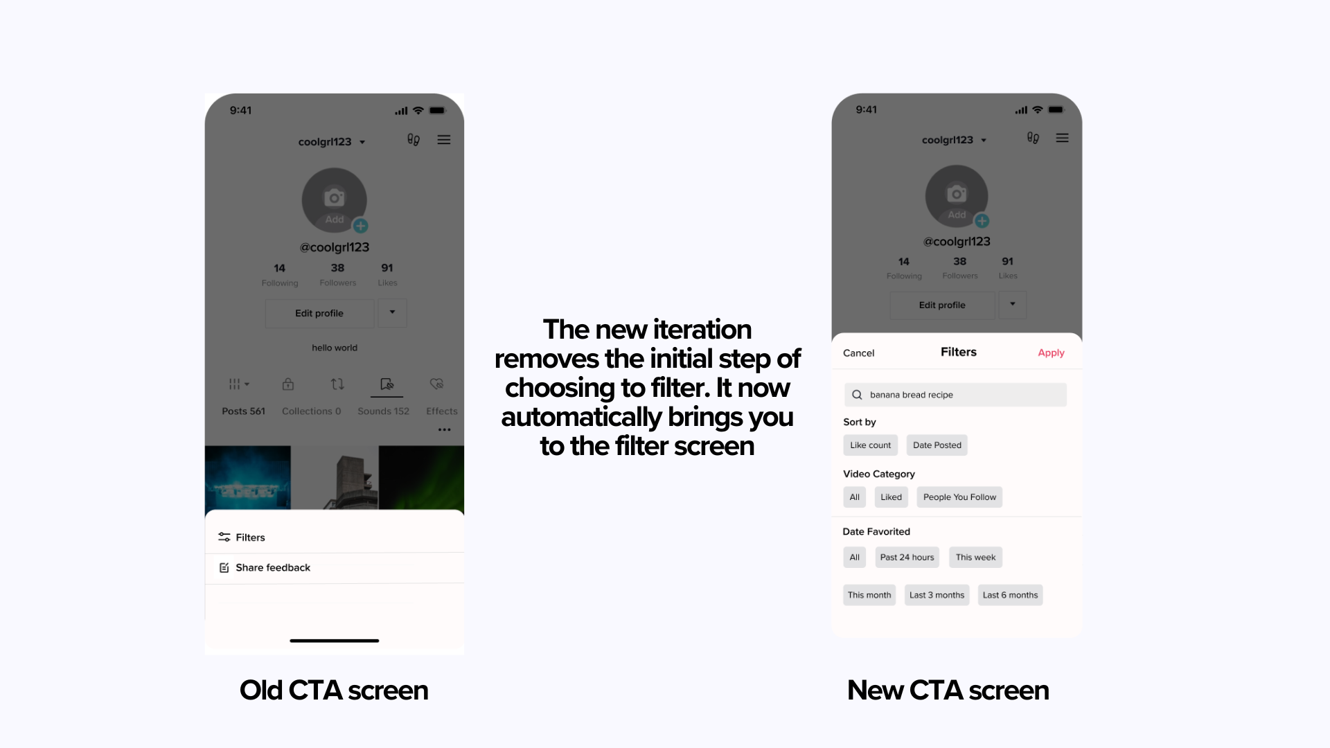 The filter option from TikTok’s UI component set proved to be confusing or cumbersome.