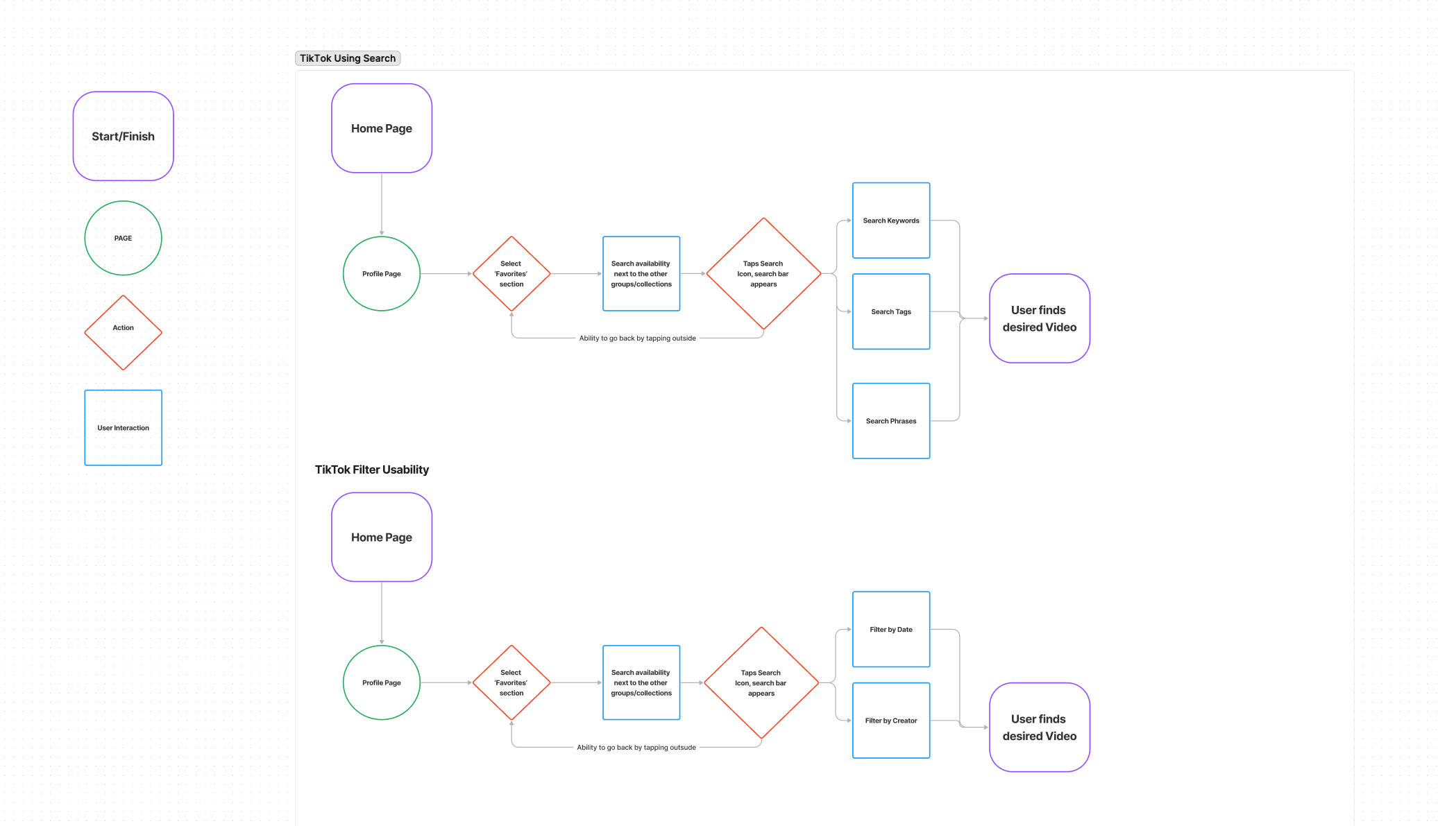 ** Two User Flows: Search and Filtering flows