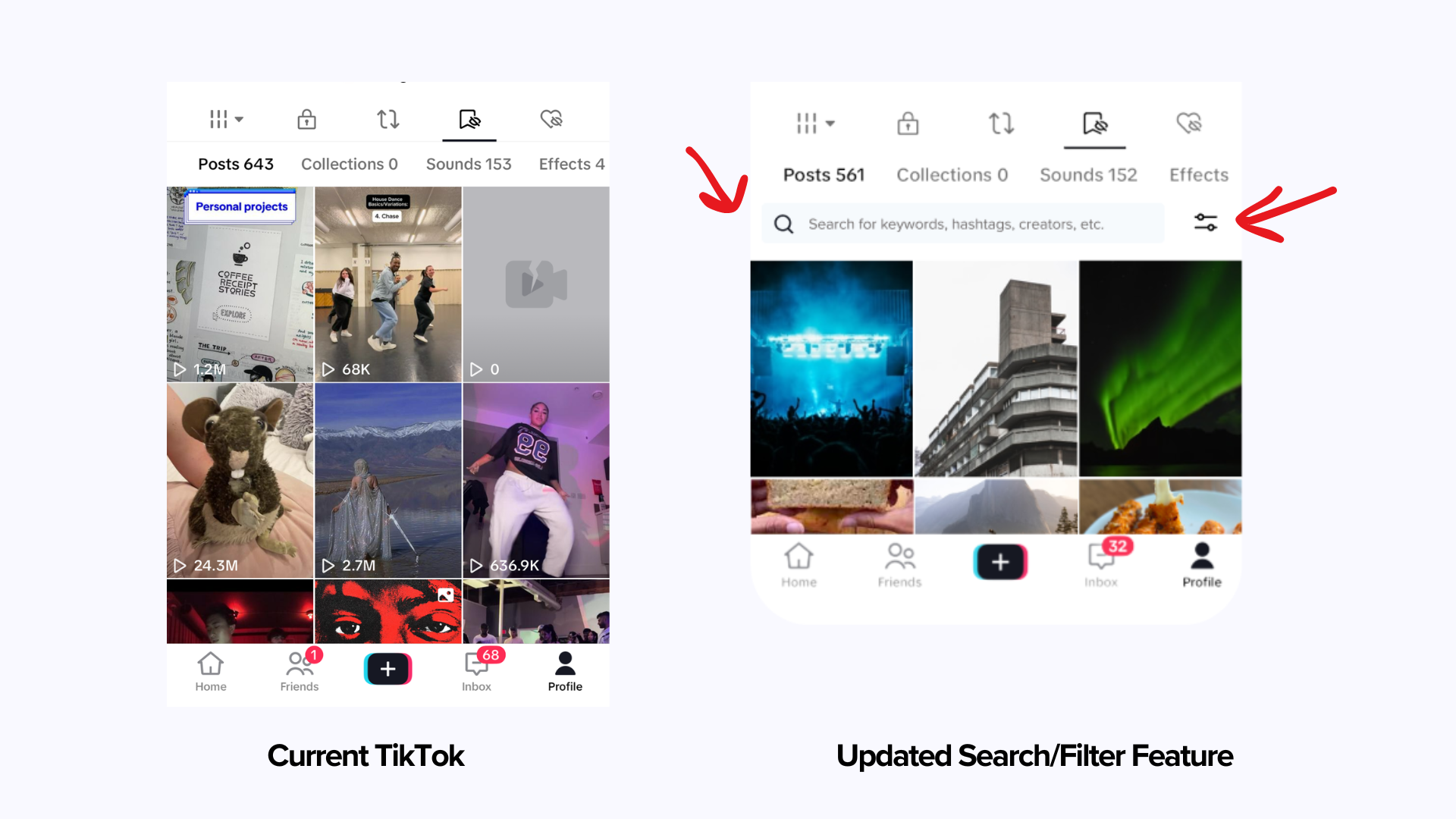Although this app offers personalized content and a ‘folders’ feature, it currently doesn't allow users to search and filter through their ‘Favorite’ videos. Without this functionality, users find themselves endlessly scrolling to find specific videos, leading to frustration with the feature. TikTok already incorporates a liking system. Therefore, the purpose of the favorites section should allow users to easily reference videos for quick access.